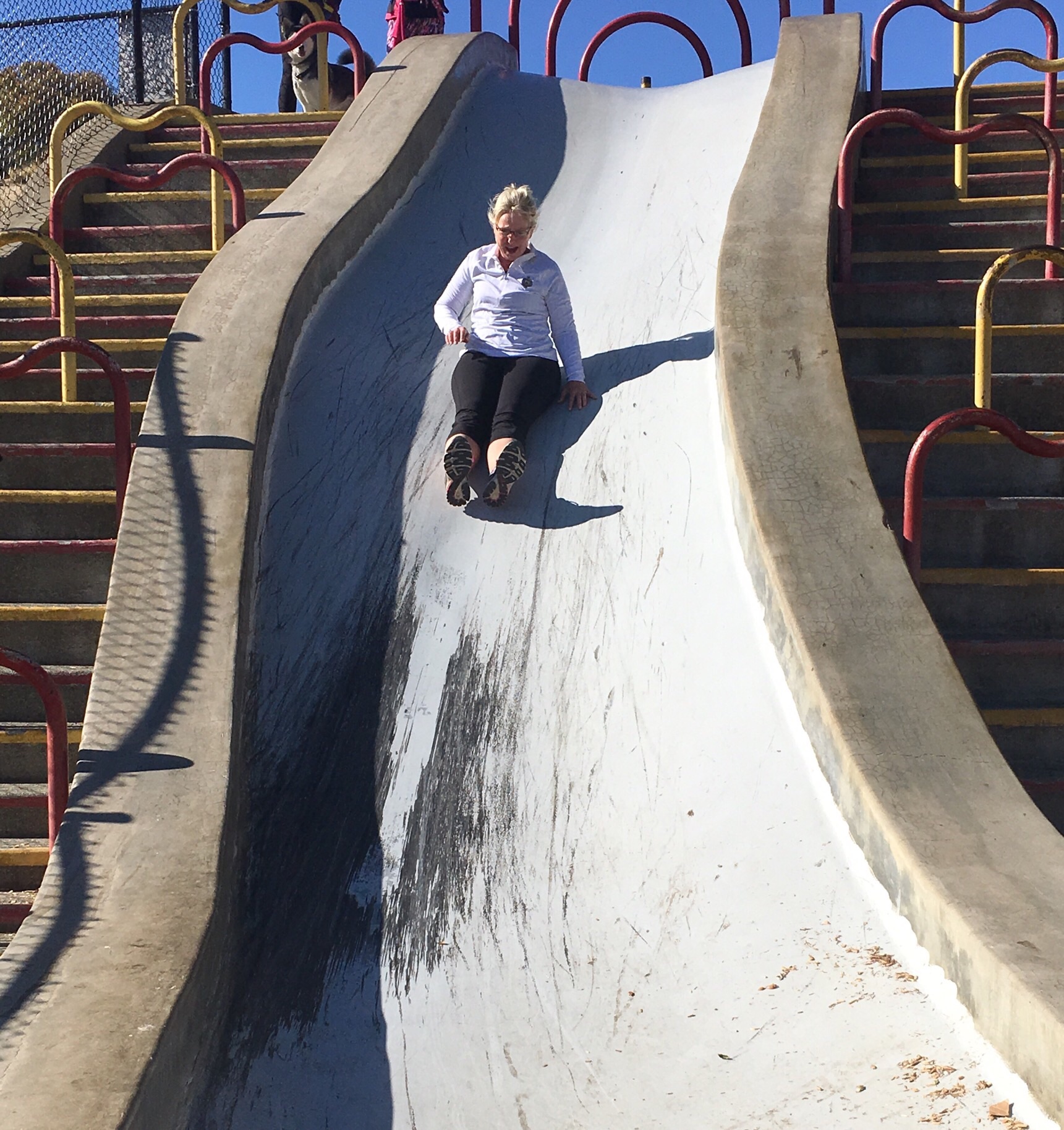image Published: July 20, 2016Full size: 1721 × 1828Attached: Getting in one more training walk and a few slides. » Carolyn’s favorite slide