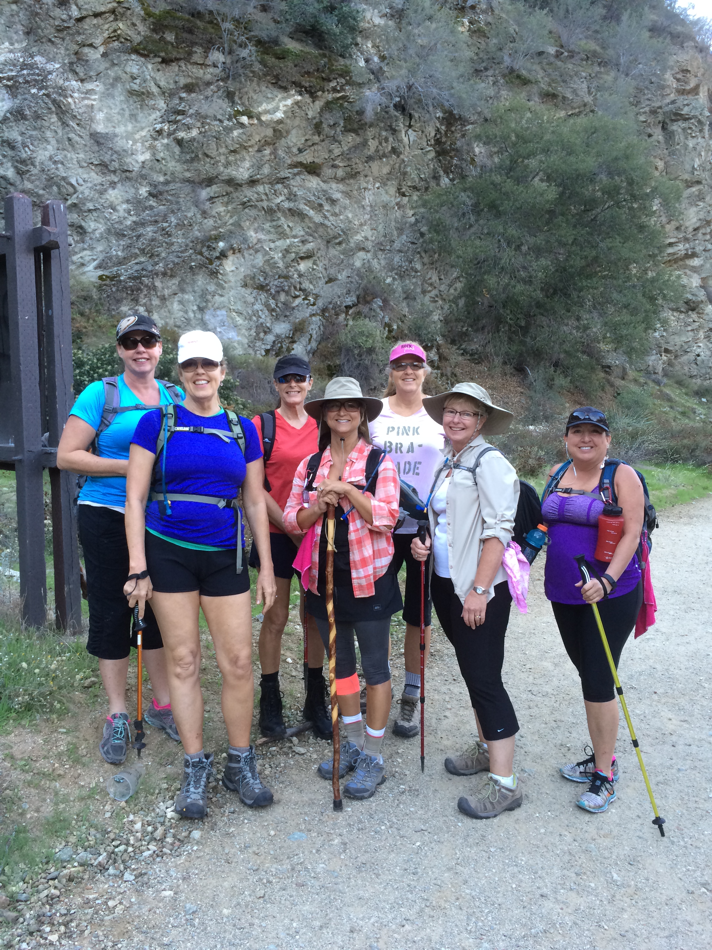 Due to the projected temperatures, we got an early start meeting in the parking lot of the Snail’s Pace in Brea, which was the same lot for the restaurant that was to be our final destination – Tempo Urban Kitchen. The location for our August walk was originally determined by the Avon Foundation staff who was holding a training event for next month’s Santa Barbara walk. We had planned to join in the 7-mile hike, but when we learned the starting time was nearly 9 am, we altered the plan. For something different, we decided to loop Brea’s two regional parks, taking in two city dams and, believe it or not, a grove of redwoods.
